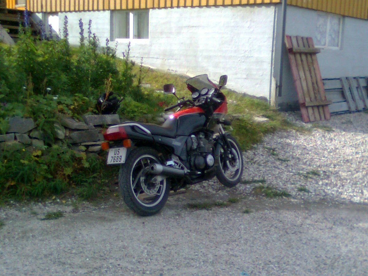 I det vi hadde begynt å lage middag hørte jeg en lastebil utenfor, det var havnelageret som kom med motorsykkelen 😀 Sjåføren forklarte at han måtte levere sykkelen i dag siden han skulle til Skibotn i morra 😀 Jeg ble selvsagt veldig gla’ for det.