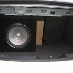 - Basskassa med plata sett fra bagasjerommet, jeg håper at med stoff på plata så blir den bortimot usynlig.