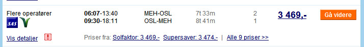 . Dette er ca det jeg må betale for å komme meg nordover: