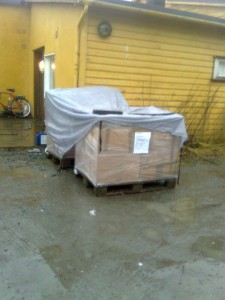Jeg tok i desperasjon å mailet Nordlines som hadde transport av motorykkelen min, fikk hyggelig svar tilbake som forklarte at det jeg skulle sende måtte være surret inn på en pall så ikke eskene fløt